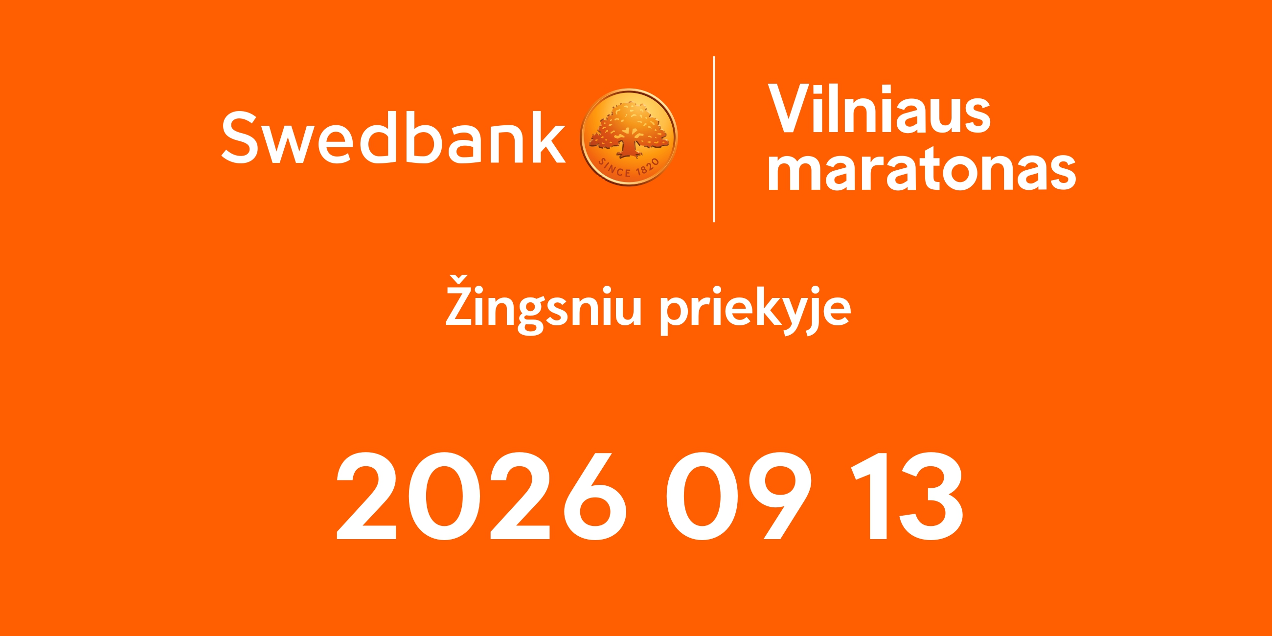 🇬🇧 "Swedbank" Vilnius Marathon will take place on 13 September 2026, is being organised for the 23rd time. It is the biggest running event in Lithuania, taking place every autumn in the capital city, attracting running professionals and enthusiasts from all over the country and guests from abroad. Every year the Vilnius Marathon attracts thousands of athletes in the marathon, half-marathon, 10 km, 5 km and children's distances.