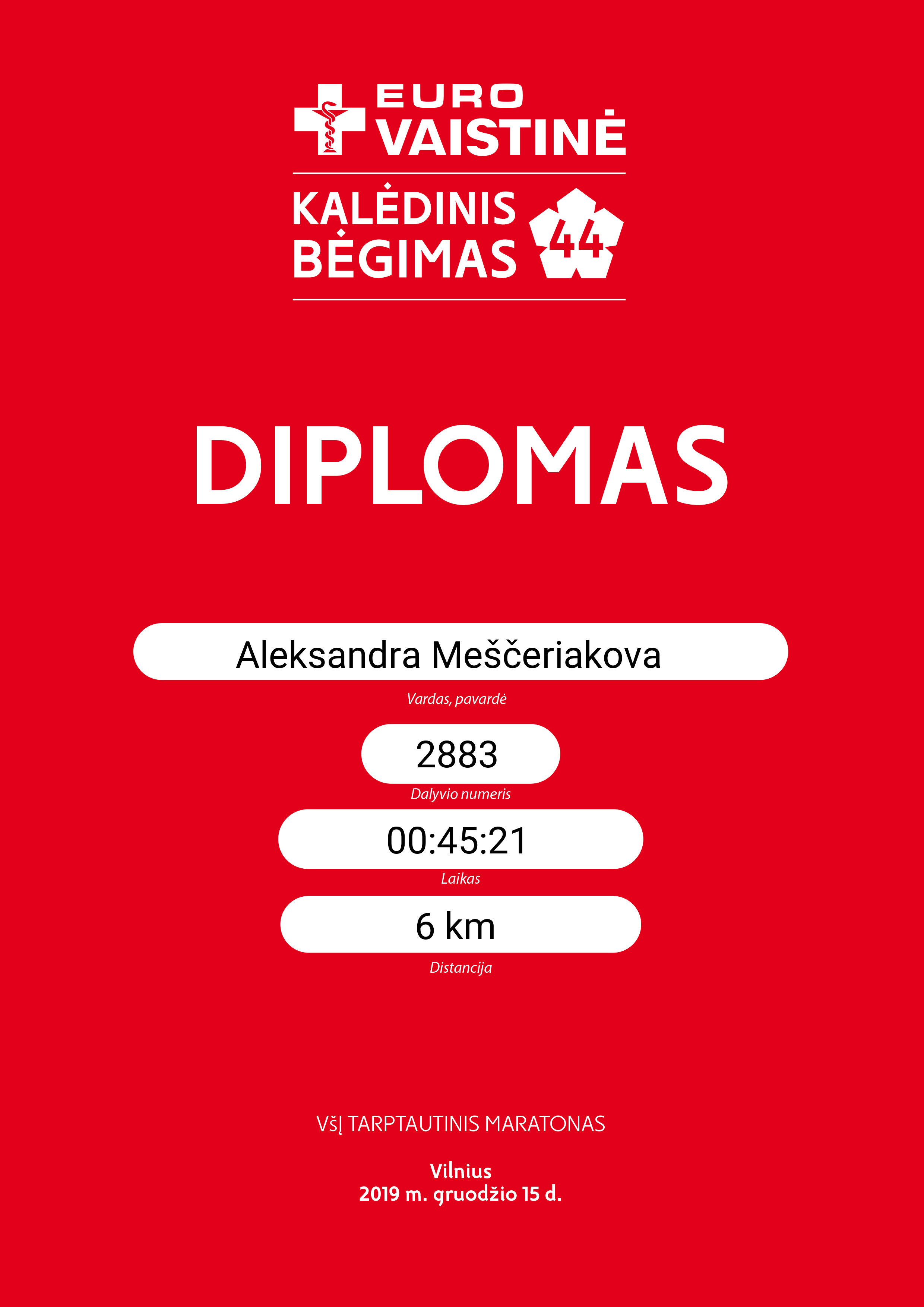 | 904 | Aleksandra Meščeriakova | 2883 | Lithuania | 6 km | 00:45:21 | Diplomas | |