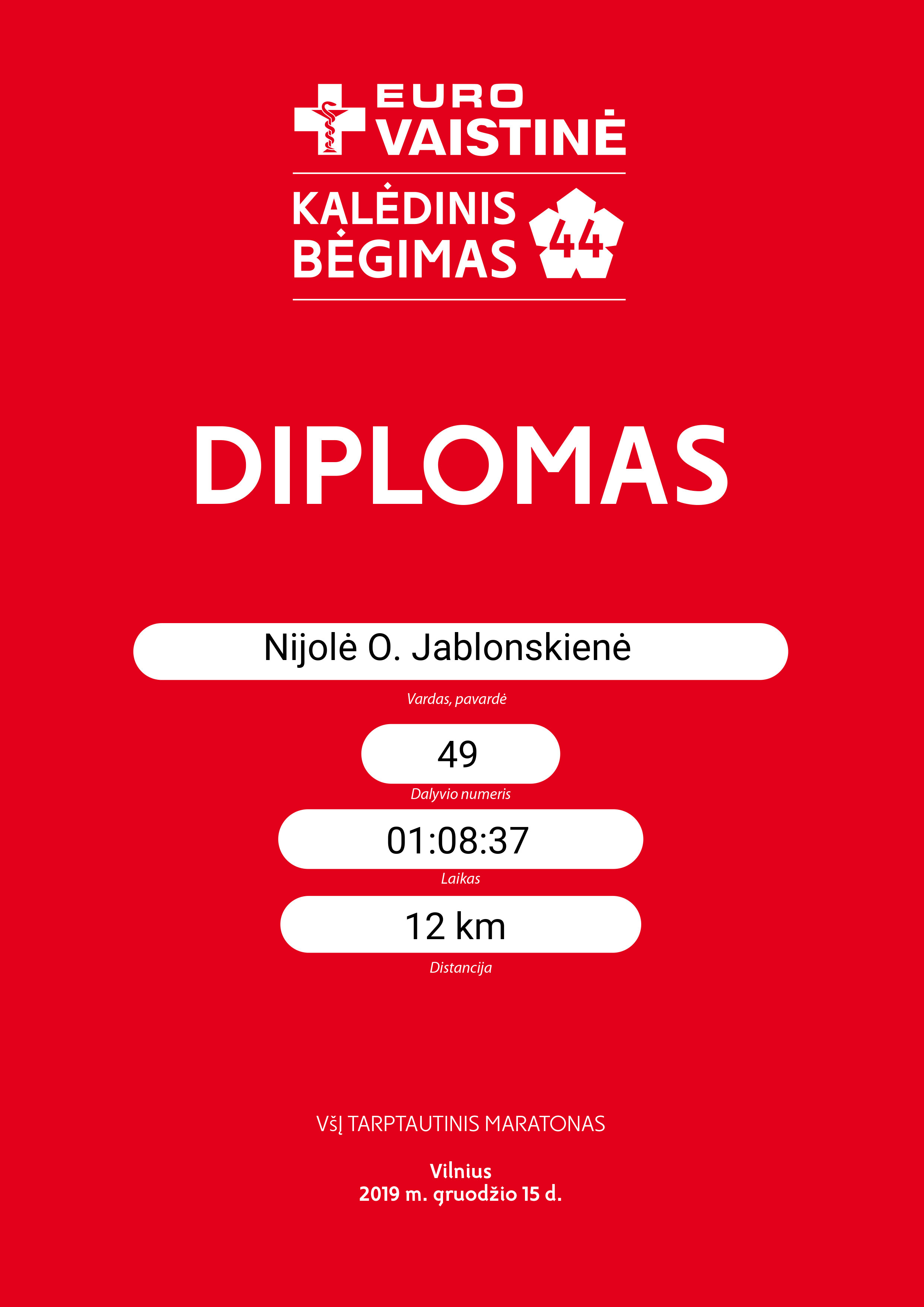 307 Nijolė O. Jablonskienė 49 Lithuania 12 km 01:08:37 01:08:19 00:33:53 Diplomas