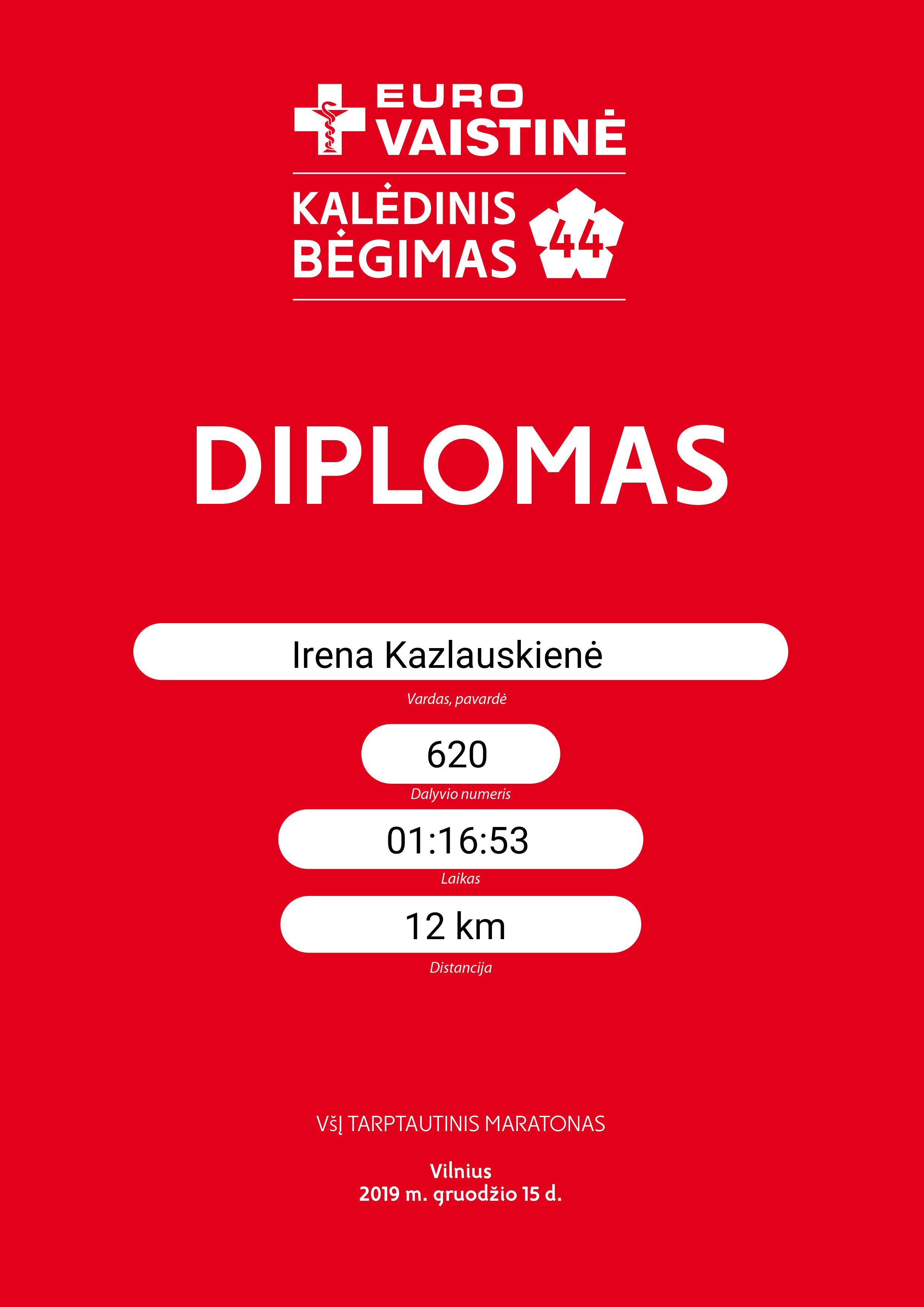 | 438 | Irena Kazlauskienė | 620 | Lithuania | 12 km | 01:16:53 | Diplomas | |