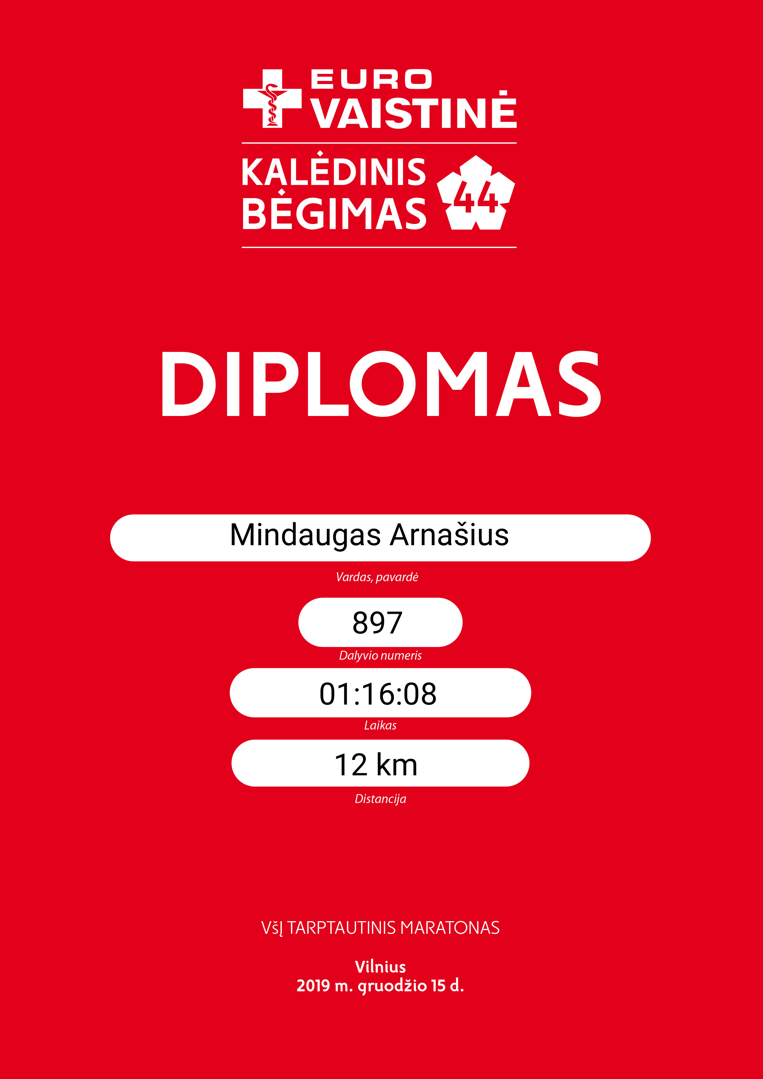 | 215 | Marius Šlepikas | 896 | Lithuania | 12 km | 01:02:45 | Diplomas | |