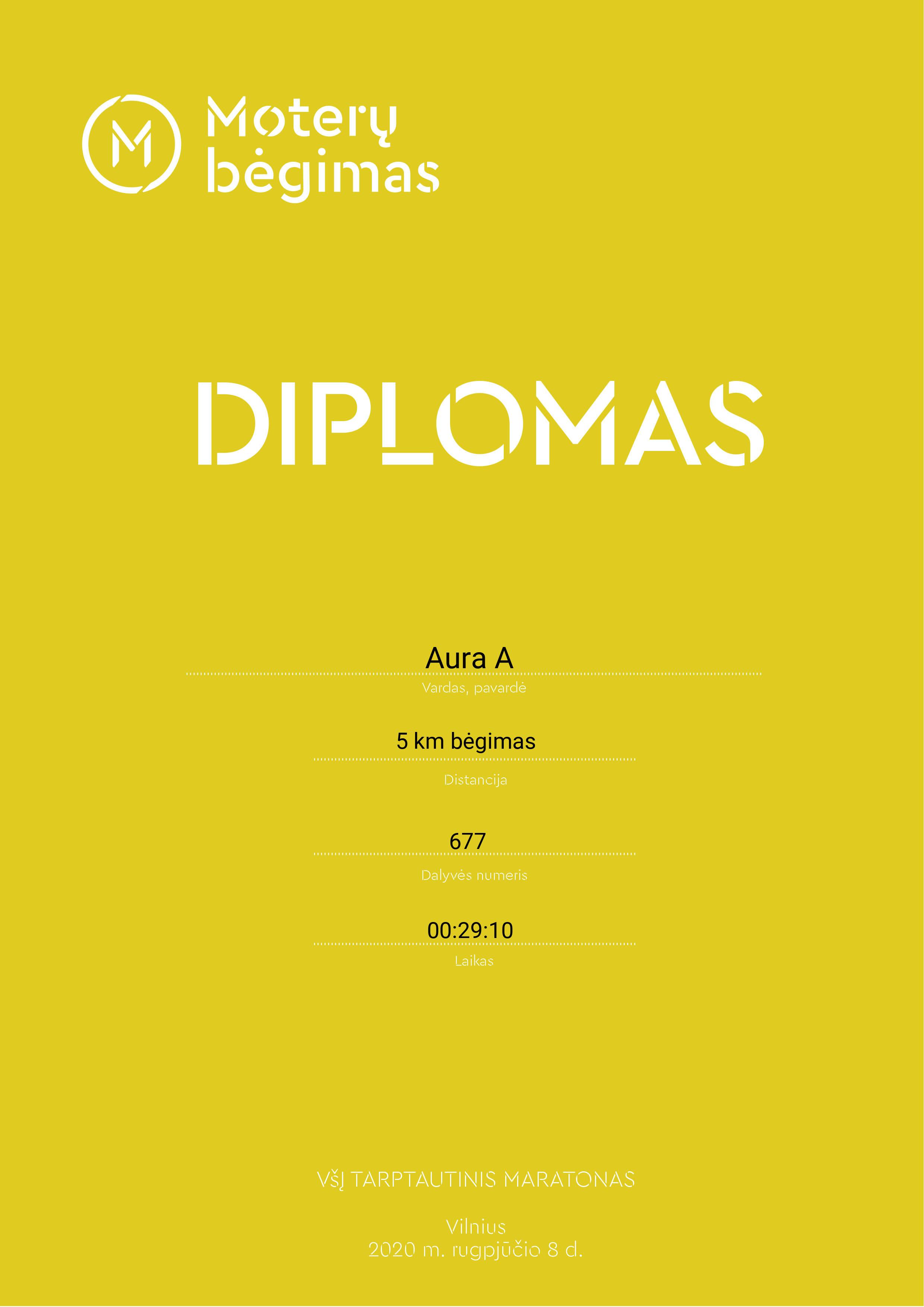 | 168 | Margarita Durkina | 617 | United Kingdom | 5 km bėgimas | 00:29:08 | Diplomas | |