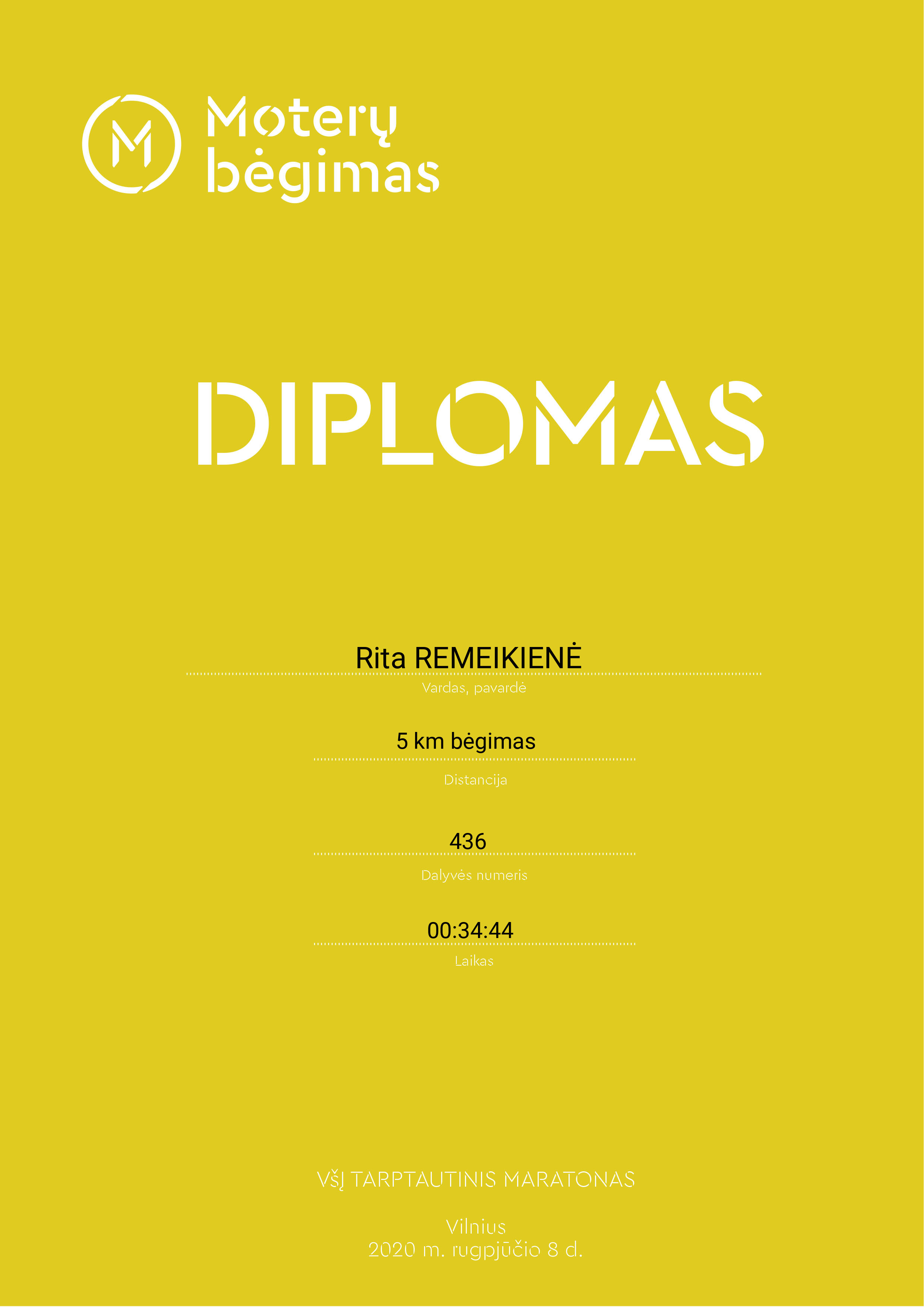 | 386 | Rita REMEIKIENĖ | 436 | Lithuania | 5 km bėgimas | 00:34:44 | Diplomas | |