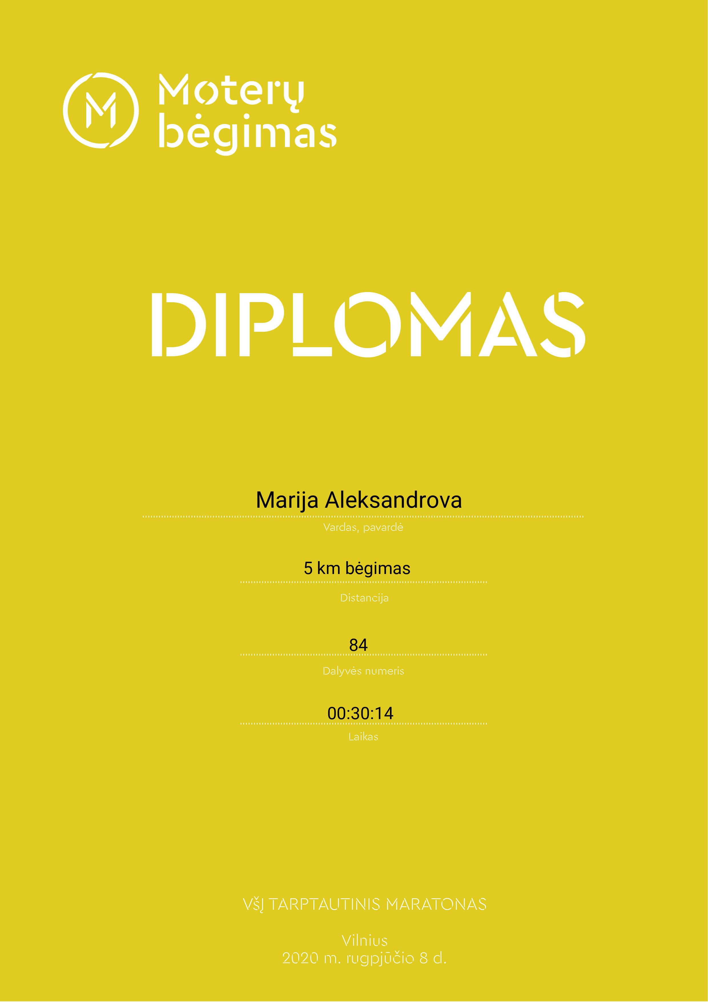 | 233 | Marija Aleksandrova | 84 | Lithuania | 5 km bėgimas | 00:30:14 | Diplomas | |