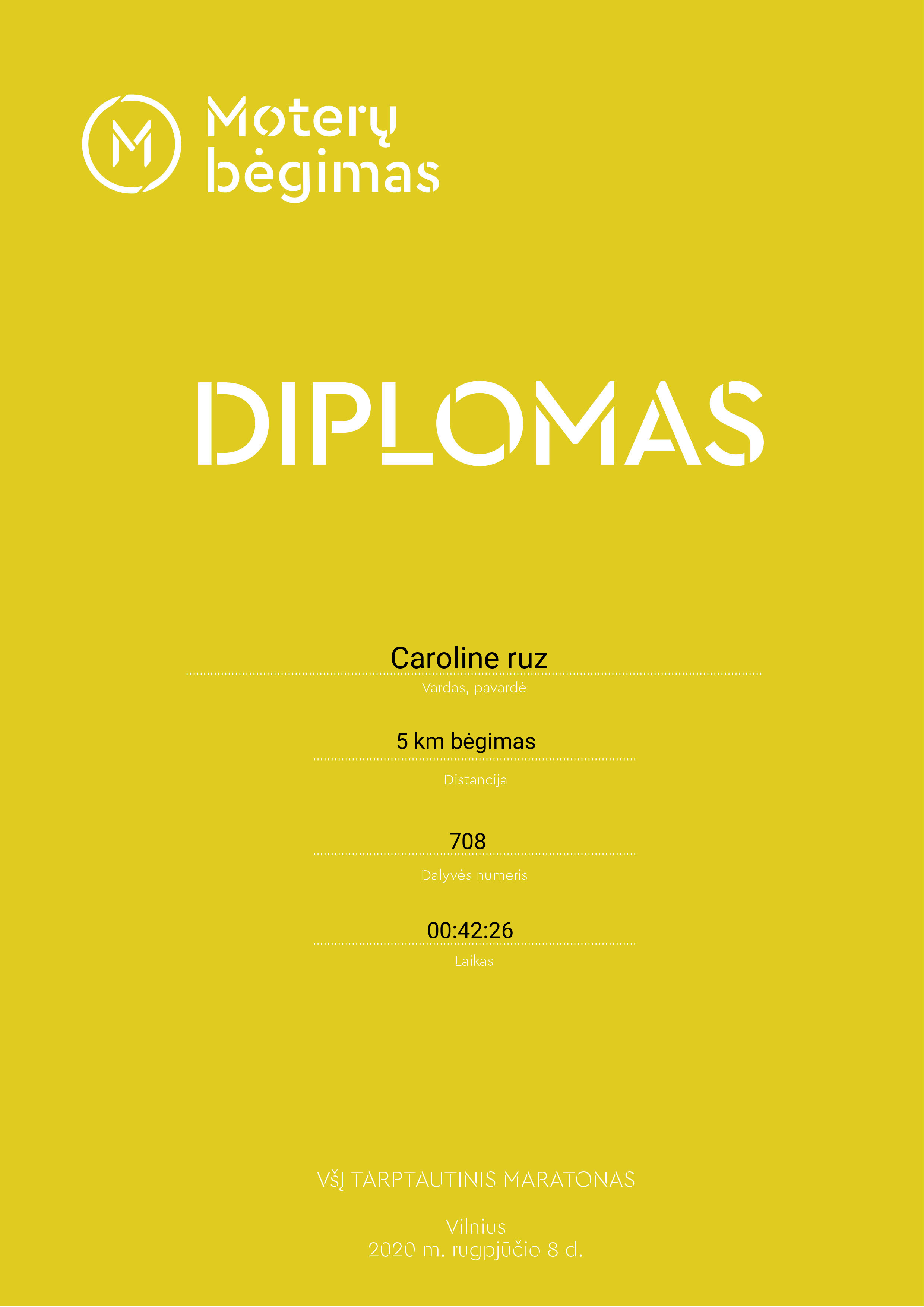 | 491 | Caroline ruz | 708 | Lithuania | 5 km bėgimas | 00:42:26 | Diplomas | |