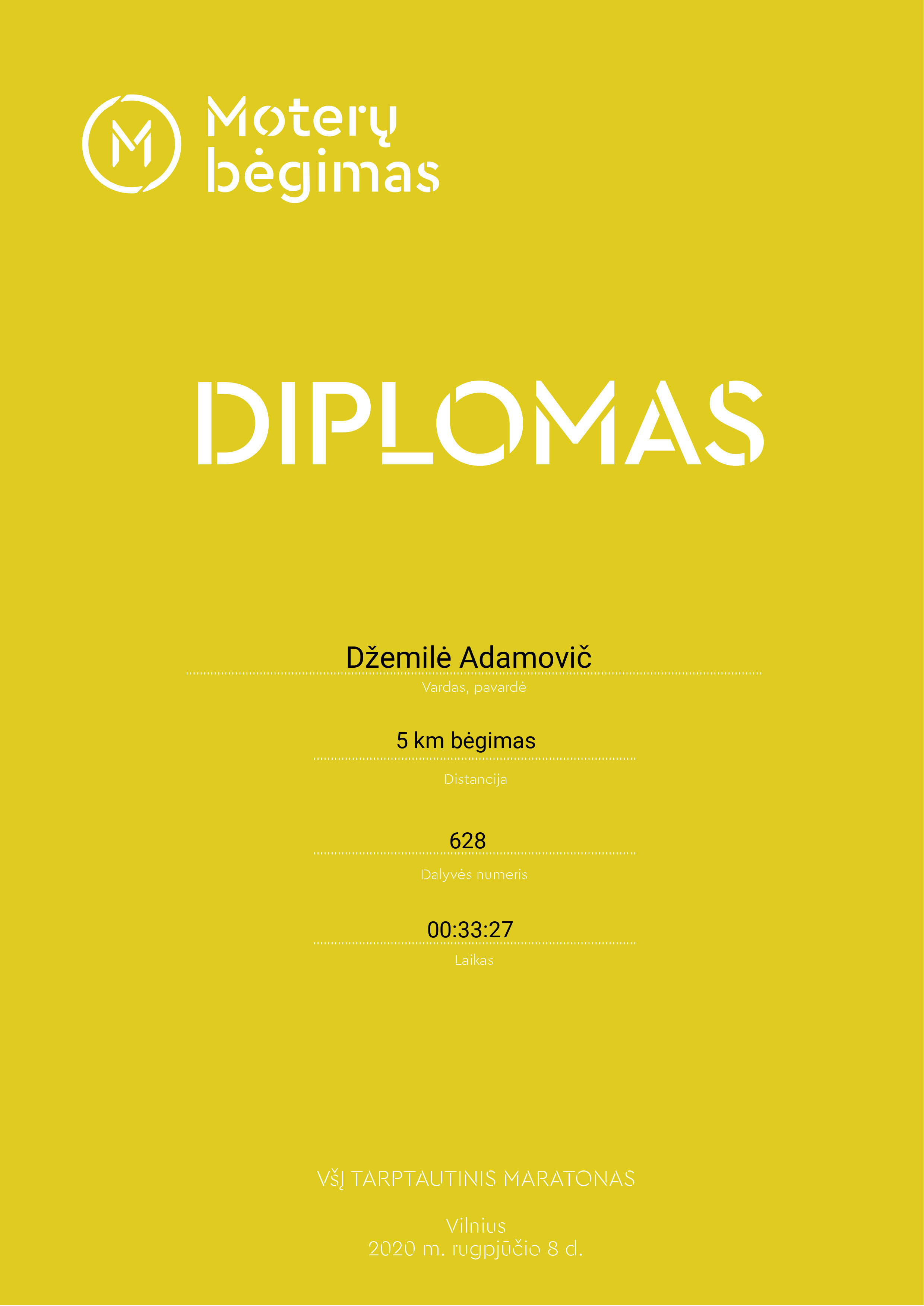 | 355 | Džemilė Adamovič | B.K. JonasMaratonas | 628 | Lithuania | 5 km bėgimas | 00:33:27 | Diplomas |