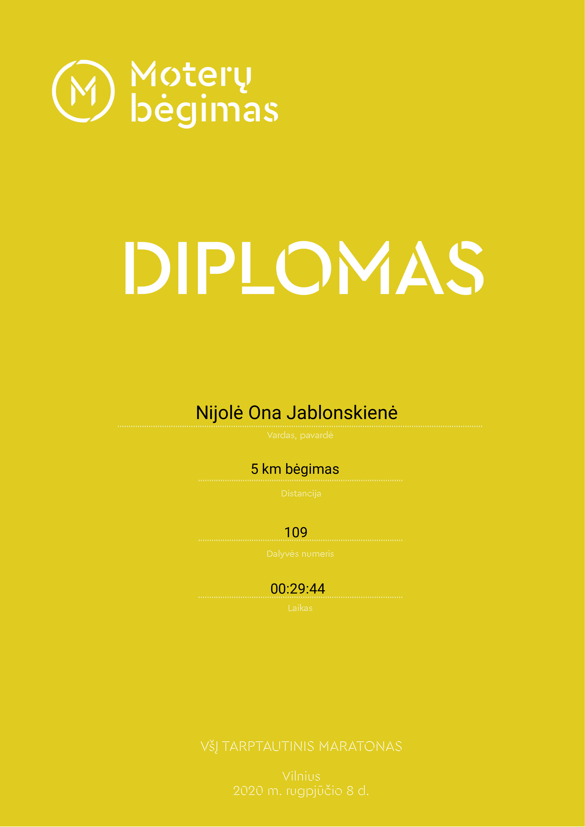 | 166 | Justina Marozienė | Bėgimo klubas | 107 | Lithuania | 5 km bėgimas | 00:29:07 | Diplomas |