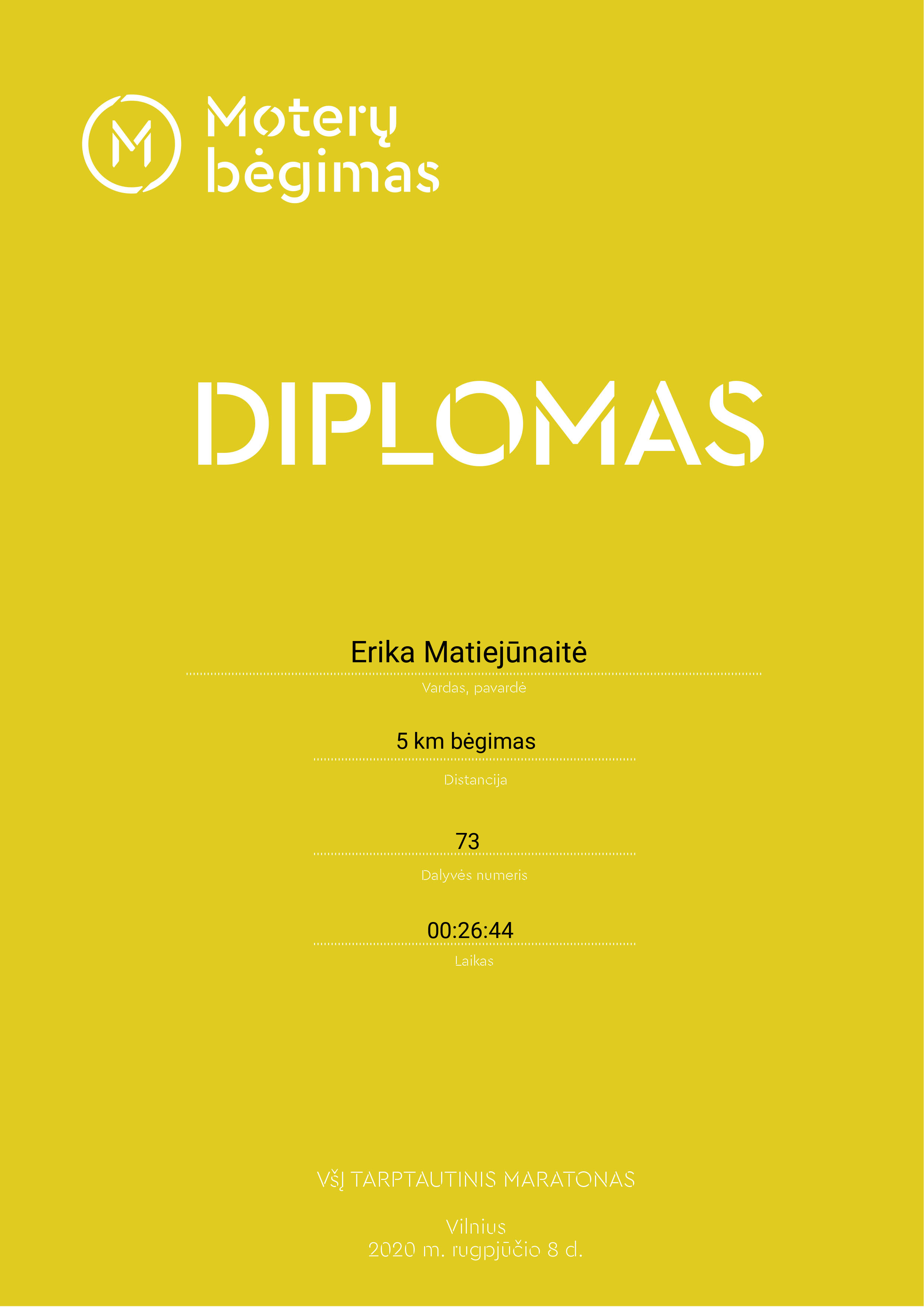 97 Erika Matiejūnaitė 73 Lithuania 5 km bėgimas 00:26:44 00:26:10 Diplomas