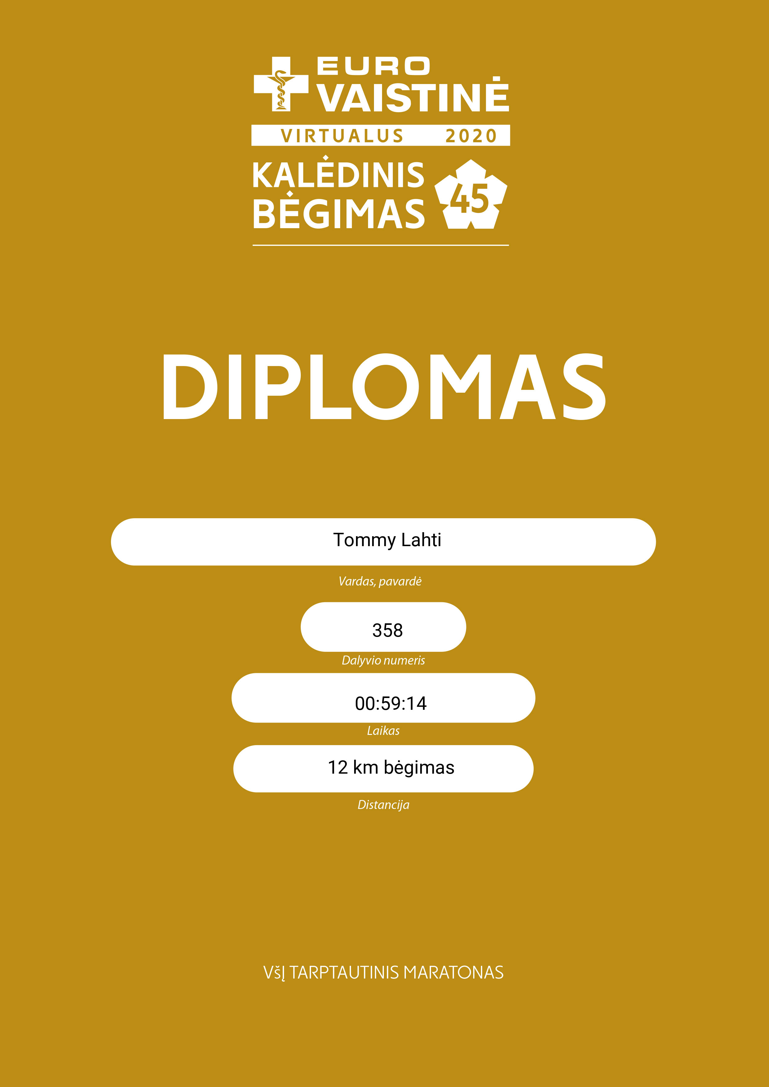 21 Danielius Simaitis Move.Zone 350 Lithuania 12 km bėgimas 00:59:14 Diplomas