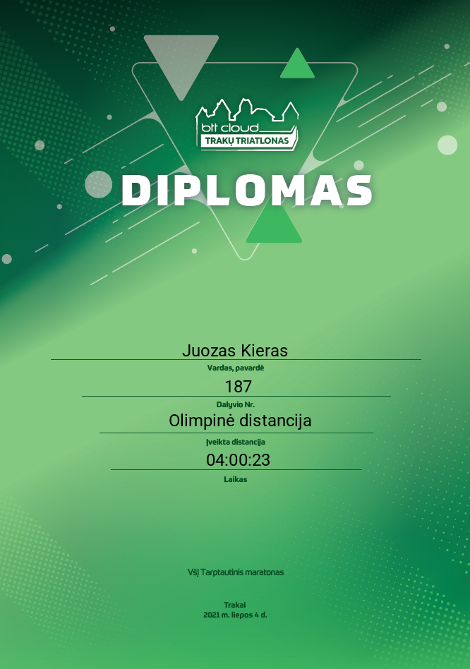 161 Juozas Kieras TSK Darna 187 Lithuania Olimpinė distancija 04:00:23 01:00:32 00:01:59 01:34:55 00:46:39 00:48:17 00:00:46 01:22:11 00:19:20 00:21:20 00:21:18 00:20:12 Diplomas