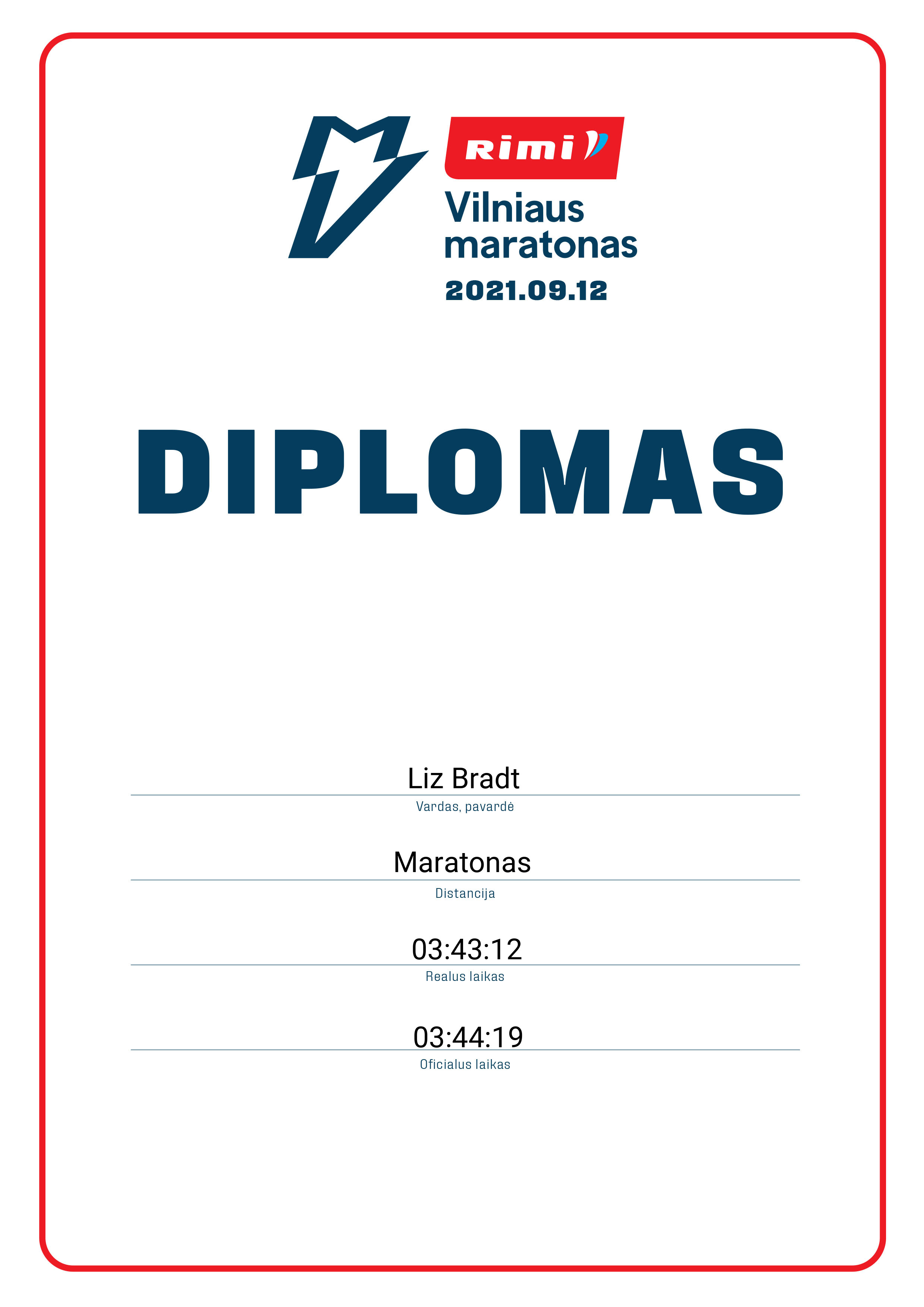 | 157 | Valerijus Cvetkovas | F.O.C.U.S. running | 935 | Lithuania | Maratonas | 03:34:53 | Diplomas |
