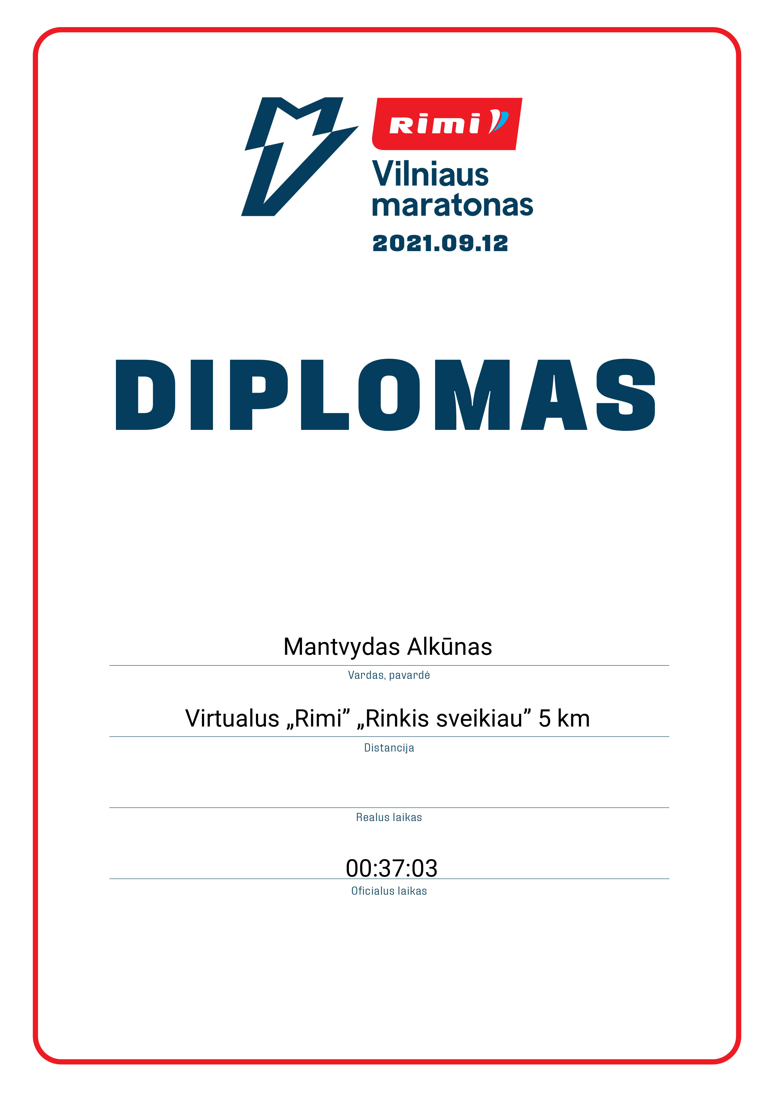 16 Mantvydas Alkūnas 90009 Lithuania Virtualus „Rimi” „Rinkis sveikiau” 5 km 00:37:03 Diplomas
