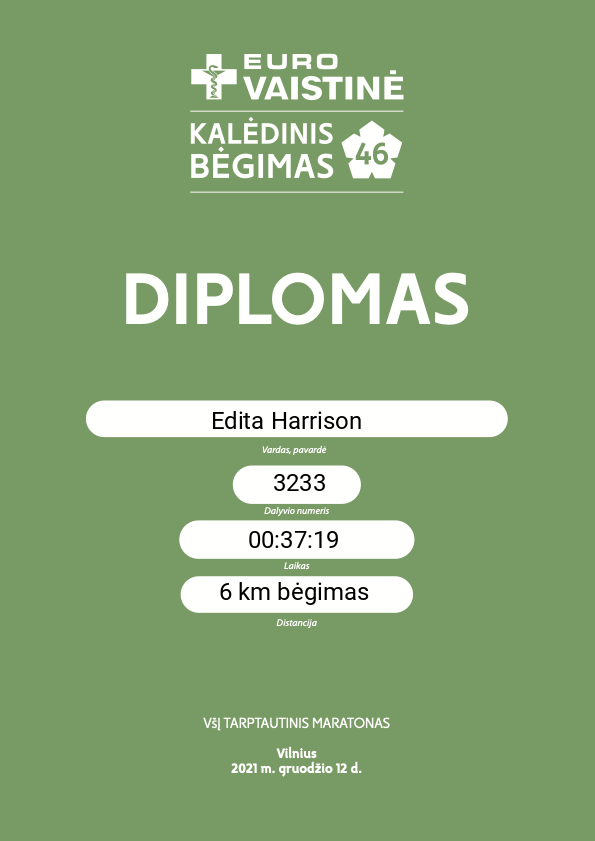 | 235 | Edita Harrison | 3233 | Lithuania | 6 km bėgimas | 00:37:36 | Diplomas | |