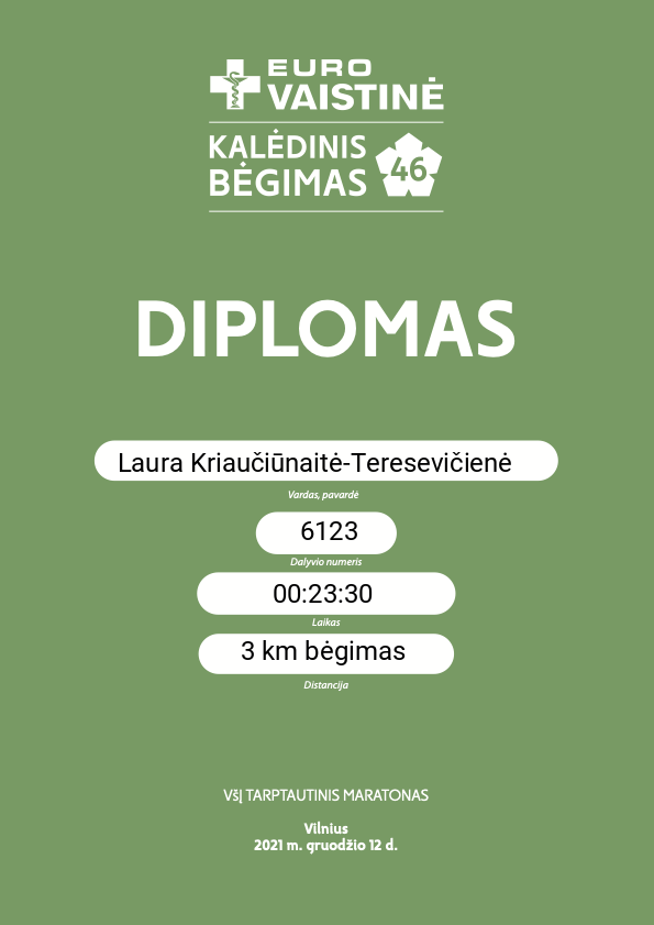| 247 | Laura Kriaučiūnaitė-Teresevičienė | Ignitis Grupė | 6123 | Lithuania | 3 km bėgimas | 00:23:48 | Diplomas |