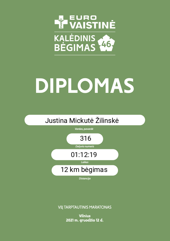 | 386 | JUOZAS Žilinskas | Love Streams Running | 315 | Lithuania | 12 km bėgimas | 01:12:42 | Diplomas |