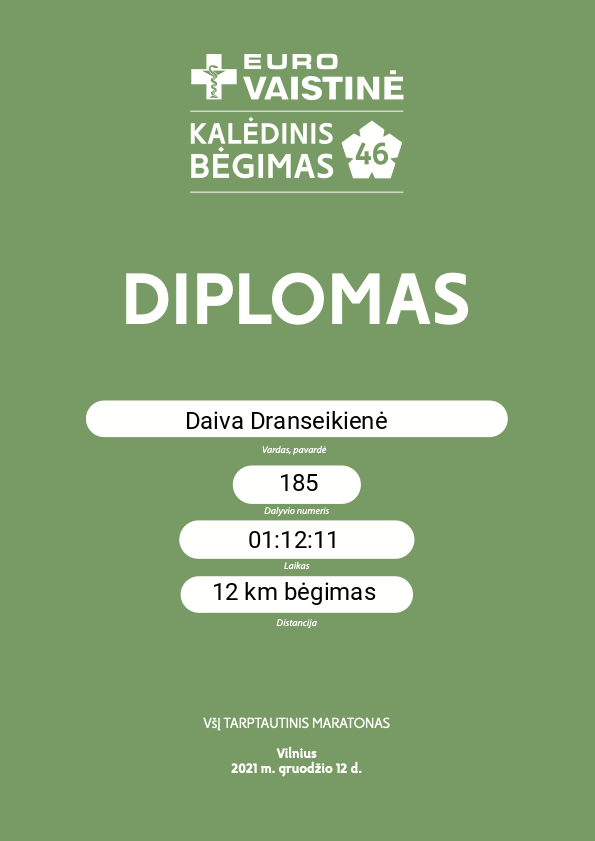 | 315 | Jolita Višinskienė | Eurovaistinė | 189 | Lithuania | 12 km bėgimas | 01:09:18 | Diplomas |