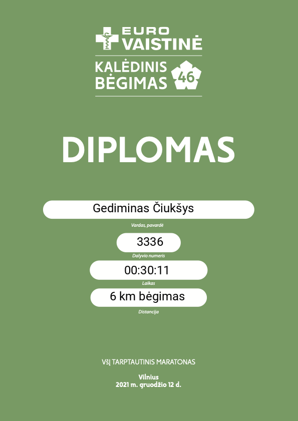 | 58 | Gediminas Čiukšys | IBS Lithuania | 3336 | Lithuania | 6 km bėgimas | 00:30:17 | Diplomas |