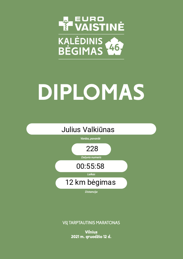| 98 | Julius Valkiūnas | Bėgte mieste | 228 | Lithuania | 12 km bėgimas | 00:56:14 | Diplomas |