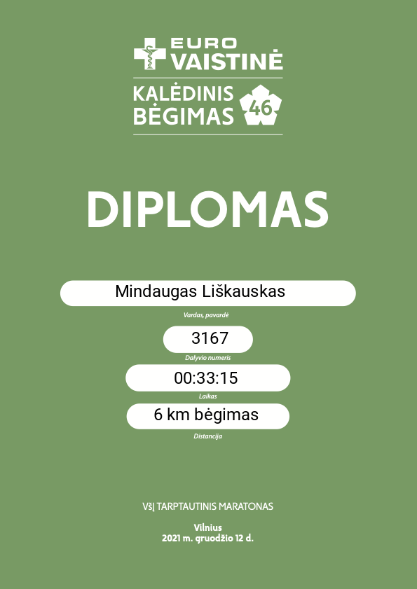 131 Mindaugas Liškauskas Eurovaistinė 3167 Lithuania 6 km bėgimas 00:33:31 00:33:15 00:16:13 Diplomas
