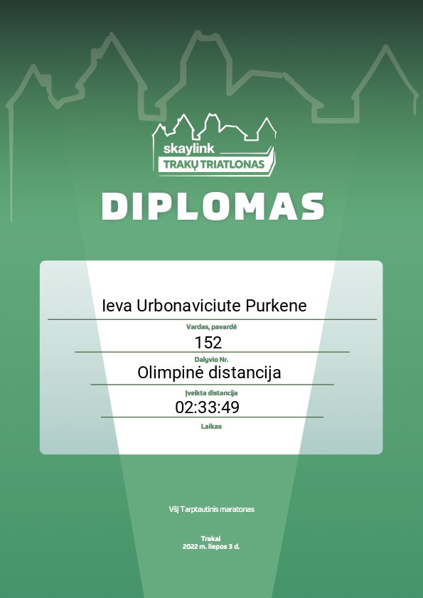 | 56 | Ieva Urbonaviciute Purkene | TRItonas | 152 | Lithuania | Olimpinė distancija | 02:33:49 | Diplomas |
