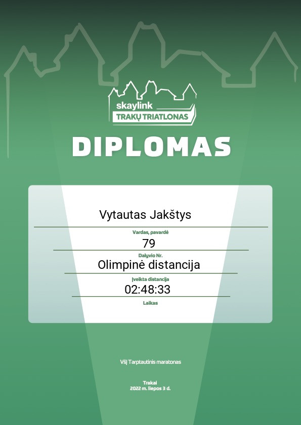 | 98 | Vytautas Jakštys | Runglorious Bastards | 79 | Lithuania | Olimpinė distancija | 02:48:33 | Diplomas |