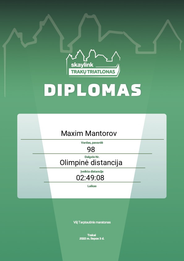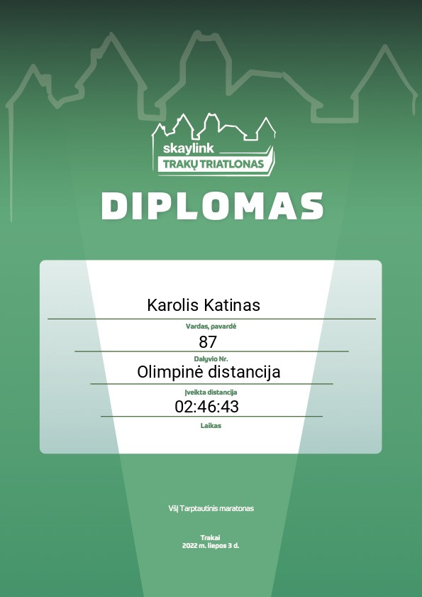 | 95 | Paulius Verpetinskas | Galeciau ir greiciau, bet kam persistengt? | 122 | Lithuania | Olimpinė distancija | 02:47:20 | Diplomas |