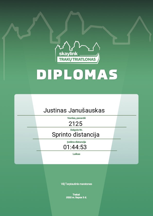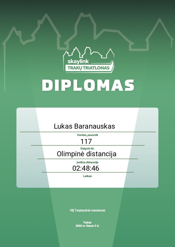 | 99 | Lukas Baranauskas | Kikboksas su Martynu | 117 | Lithuania | Olimpinė distancija | 02:48:46 | Diplomas |