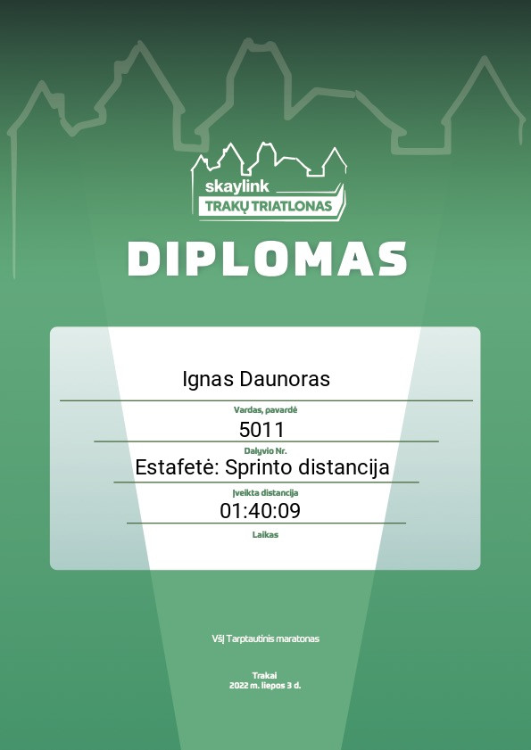 16 Dominykas Balčiūnas Panevėžio triatlono klubas “TRI-Fun”/ PSC 3017 Lithuania Super sprinto distancija 00:38:56 00:07:38 00:00:43 00:18:32 00:00:29 00:11:34 Diplomas