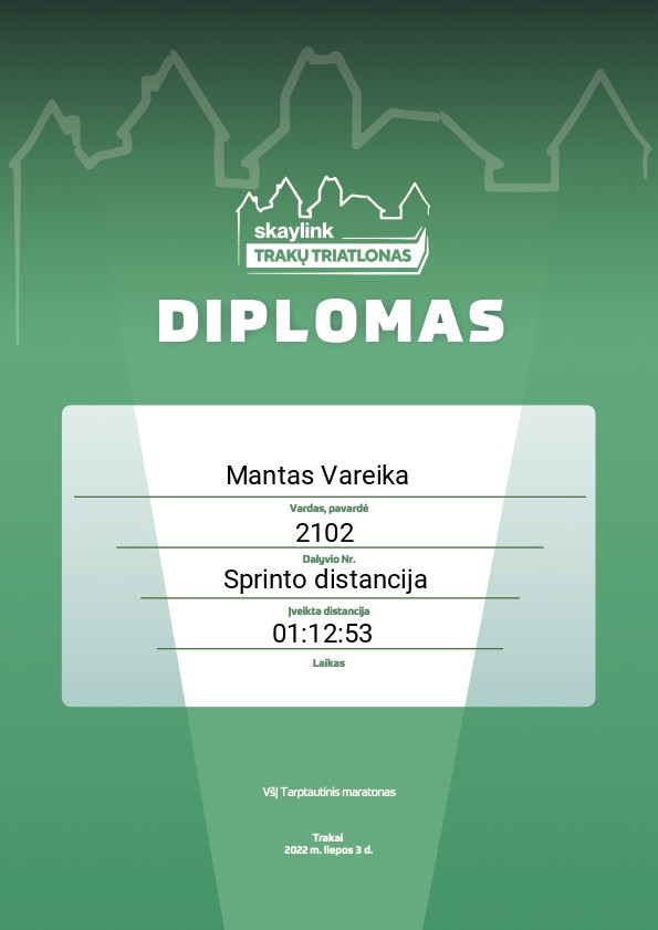 14 Mantas Vareika Trakų triatlono būrelis 2102 Lithuania Sprinto distancija 01:12:53 00:17:56 00:00:39 00:33:55 00:10:07 00:09:35 00:00:41 00:19:42 Diplomas