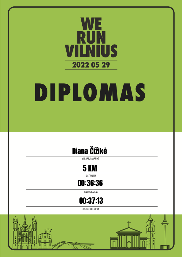 | 1143 | Diana Čižikė | 30327 | Lithuania | 5 KM | 00:37:13 | Diplomas | |