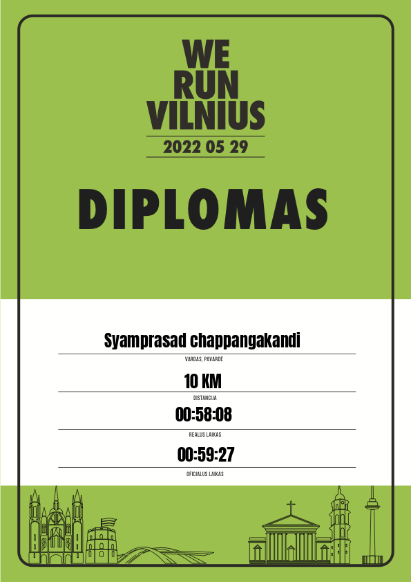| 699 | Syamprasad chappangakandi | 21251 | Lithuania | 10 KM | 00:59:27 | Diplomas | |