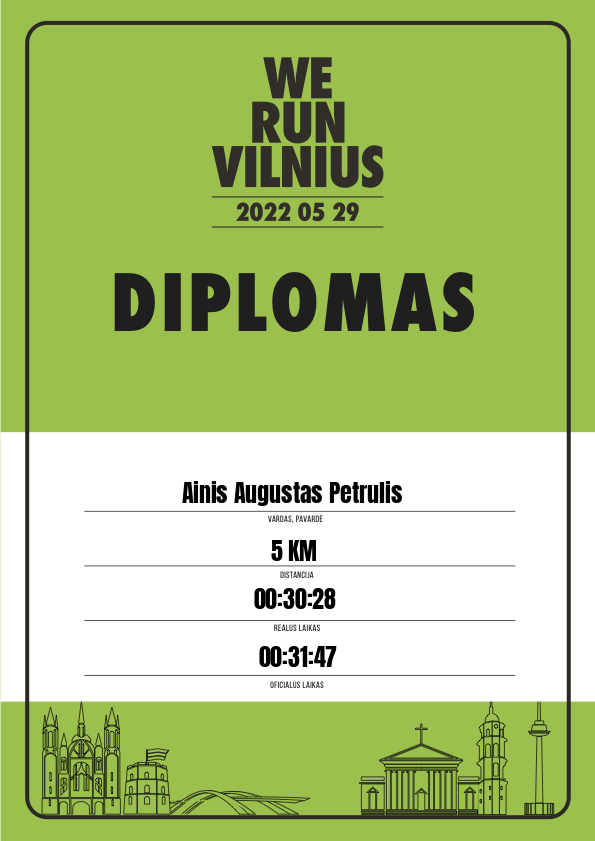 | 897 | Aistė Armanavičiūtė | 31047 | Lithuania | 5 KM | 00:33:41 | Diplomas | |