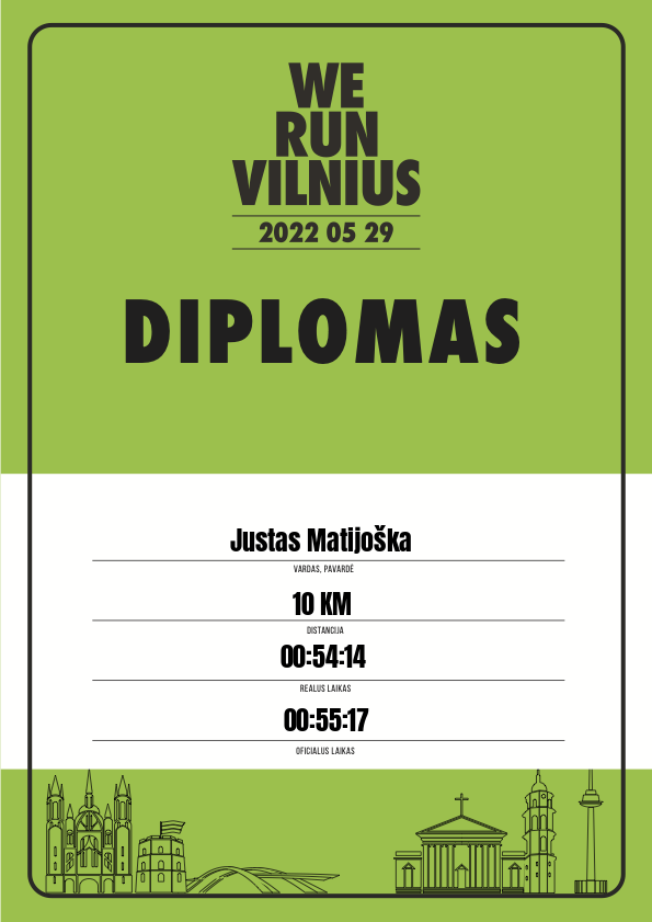 | 476 | Justas Daujotas | 21207 | Lithuania | 10 KM | 00:55:22 | Diplomas | |