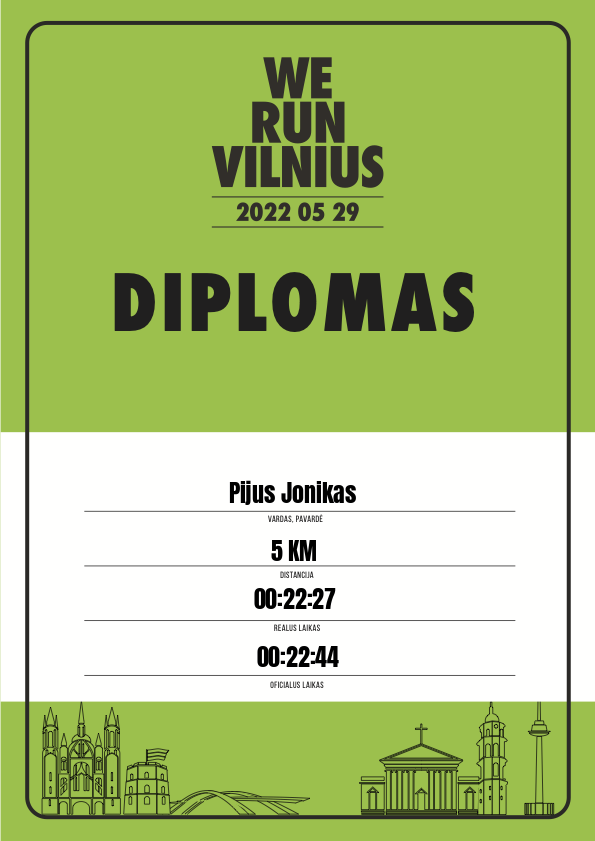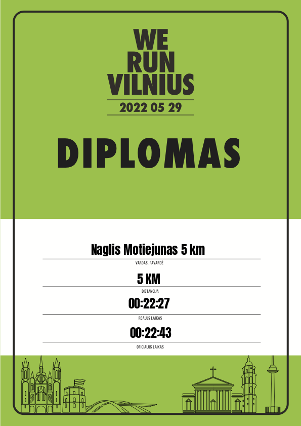| 89 | Naglis Motiejunas 5 km | 31467 | Lithuania | 5 KM | 00:22:43 | Diplomas | |