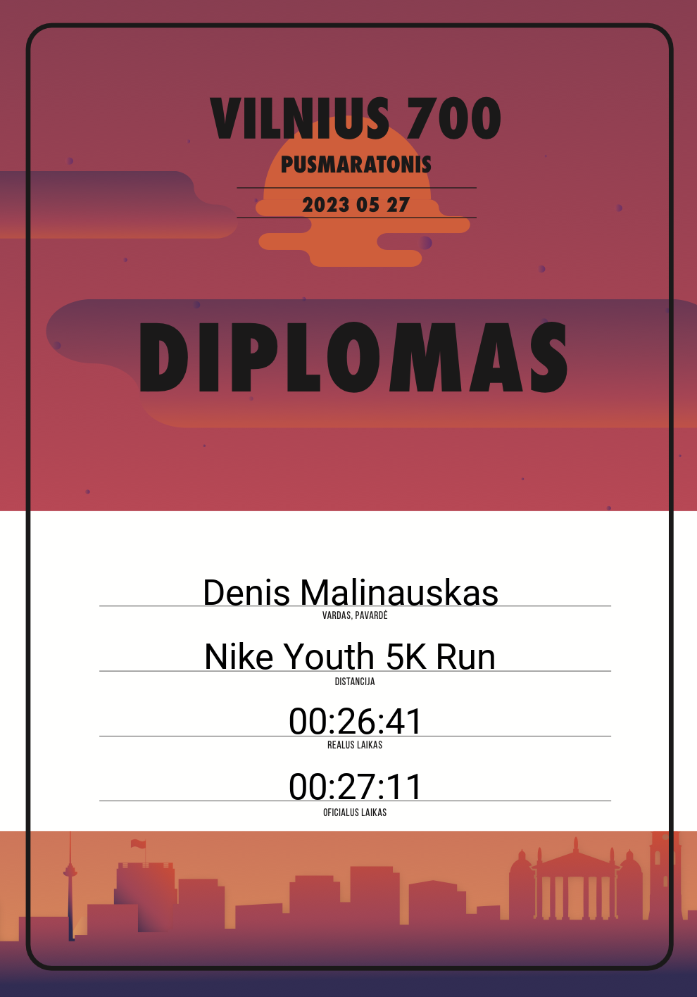 | 149 | Denis Malinauskas | Teleperformance Lithuania | 30293 | Lithuania | Nike Youth 5K Run | 00:27:11 | Diplomas |