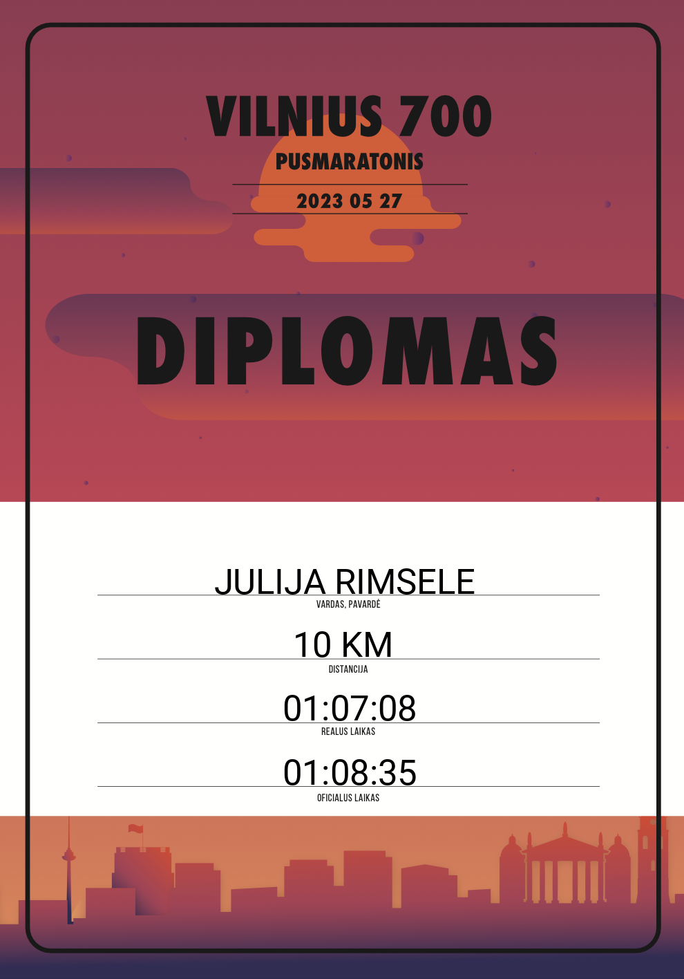 | 776 | JULIJA RIMSELE | 20998 | Lithuania | 10 KM | 01:08:35 | Diplomas | |
