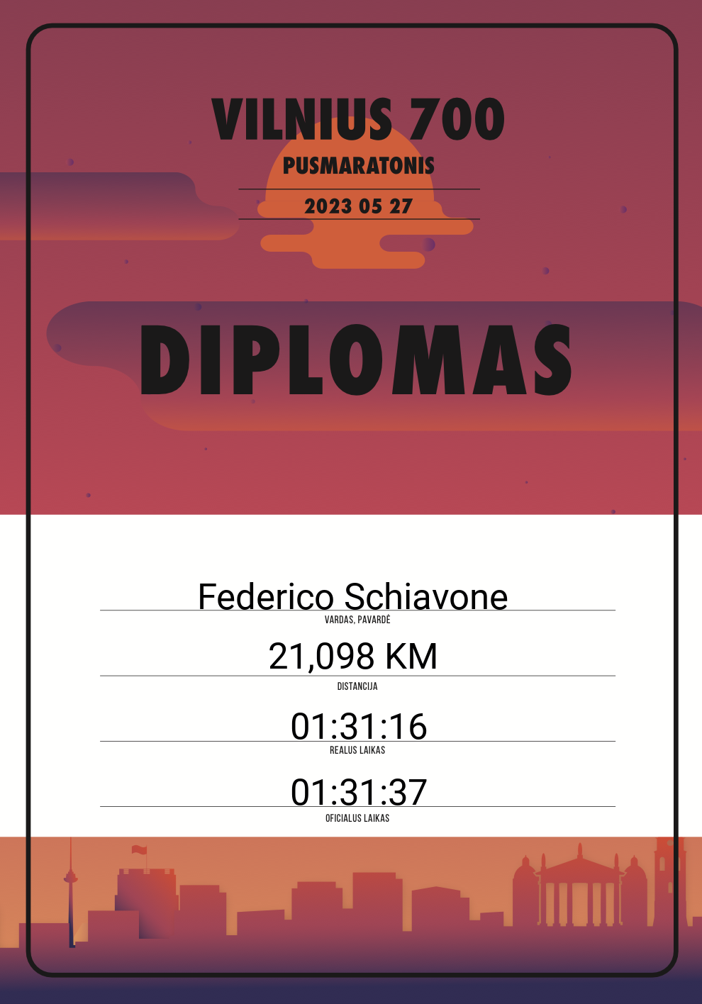 | 83 | Federico Schiavone | Schiavo | 10888 | Italy | 21,098 KM | 01:31:37 | Diplomas |
