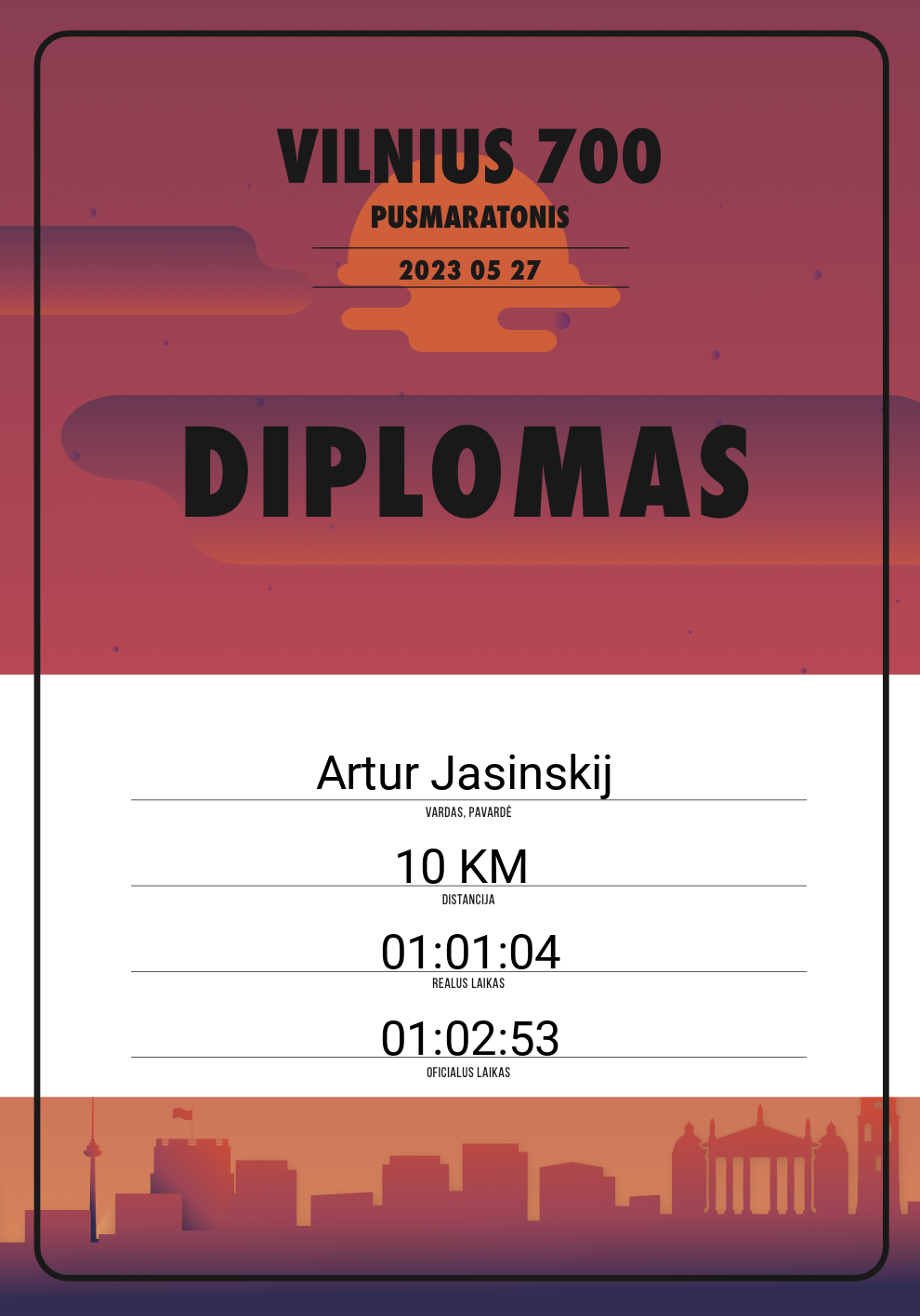 | 635 | Arnoldas Petrauskas | RAMIU VEIDU | 20846 | Lithuania | 10 KM | 01:03:19 | Diplomas |