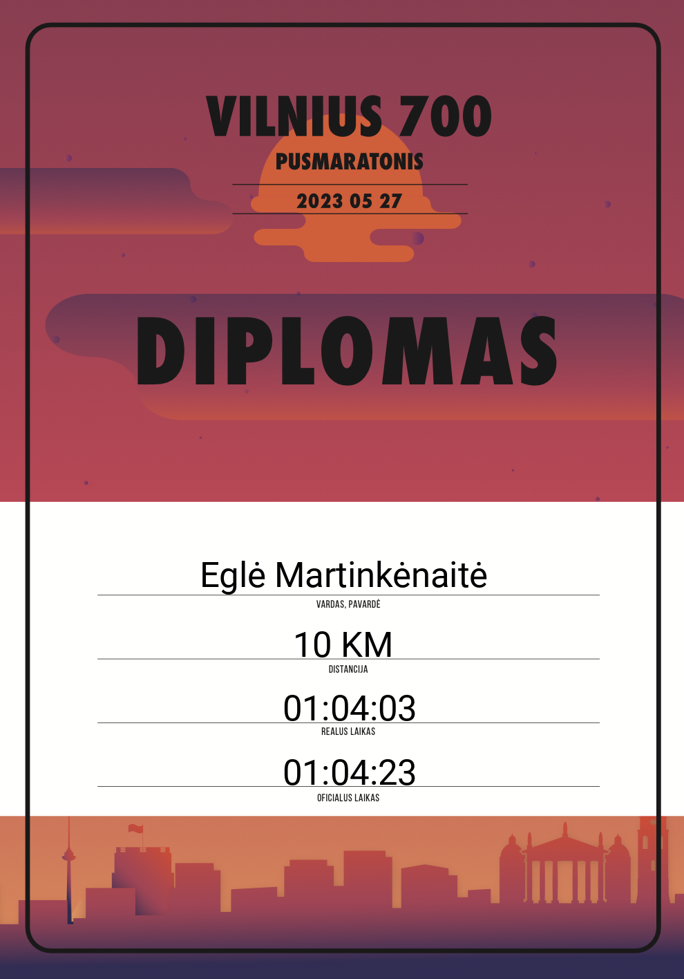 | 751 | Eglė Kesminė | 11037 | Lithuania | 21,098 KM | 02:14:49 | Diplomas | |