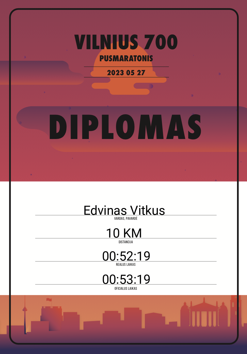 | 248 | Edvinas Vitkus | 20486 | Lithuania | 10 KM | 00:53:19 | Diplomas | |