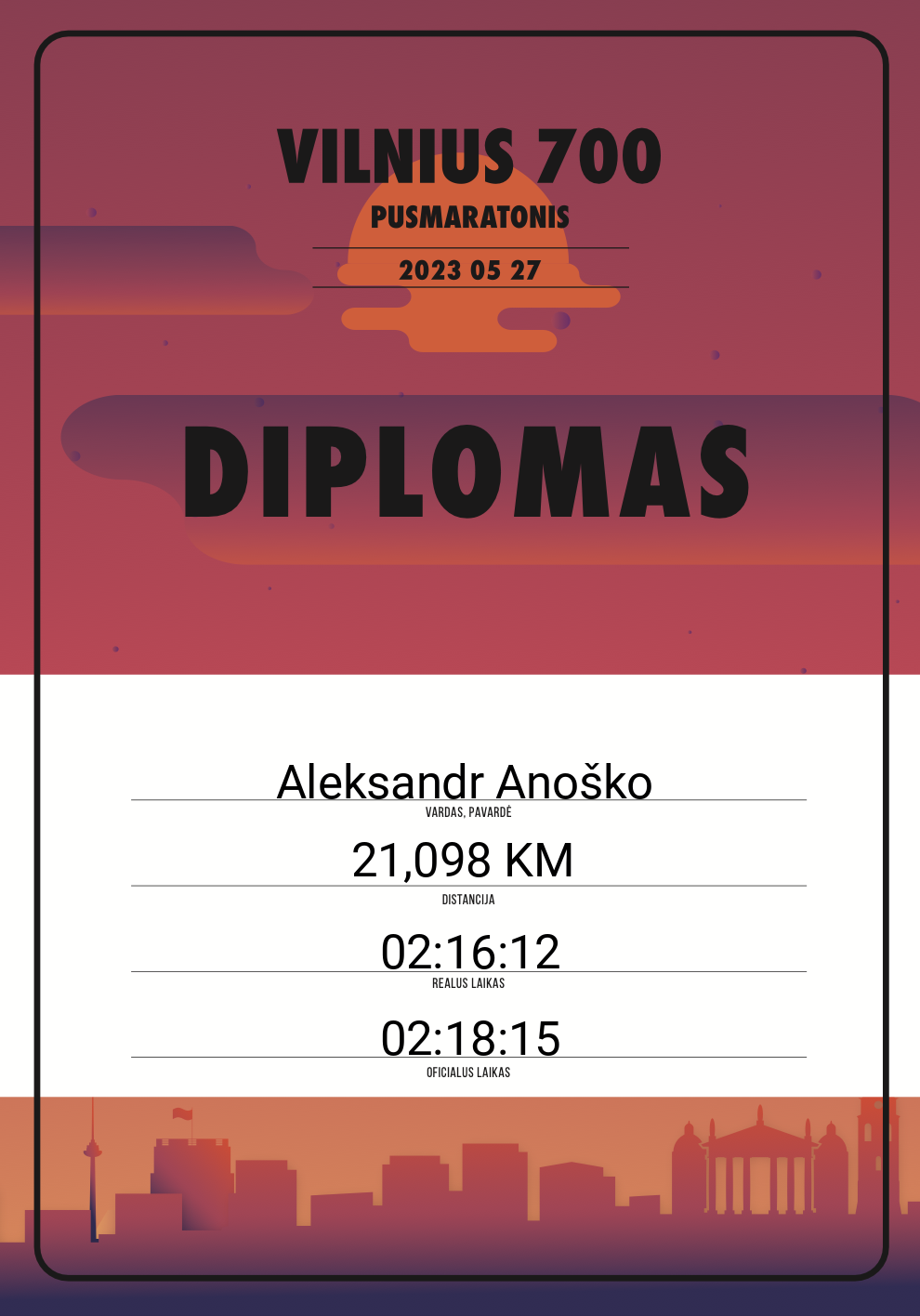 | 783 | Aleksandr Anoško | 10163 | Lithuania | 21,098 KM | 02:18:15 | Diplomas | |