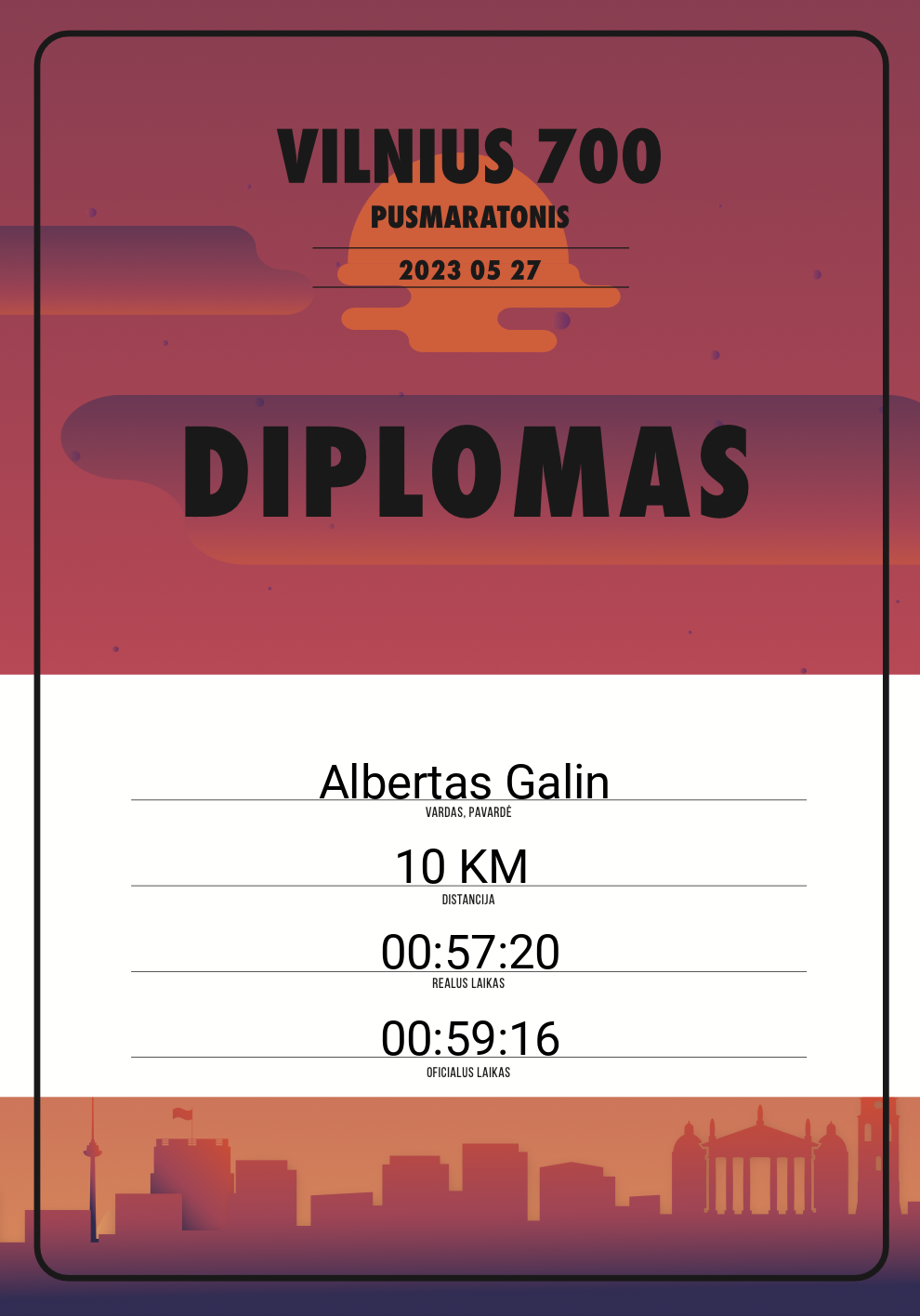 | 200 | Albert Kušlevič | 30663 | Lithuania | Nike Youth 5K Run | 00:28:59 | Diplomas | |