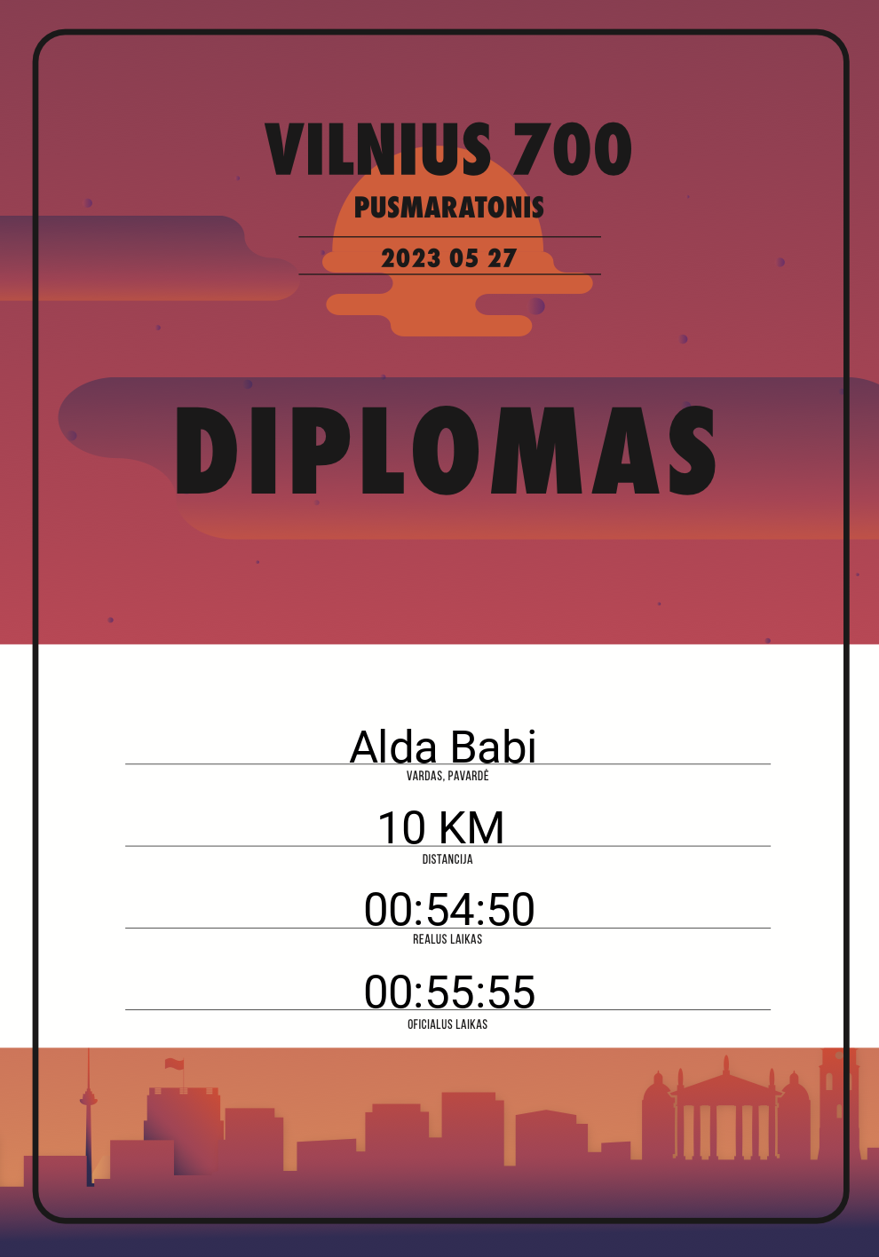 | 347 | Alda Babi | 20628 | Lithuania | 10 KM | 00:55:55 | Diplomas | |
