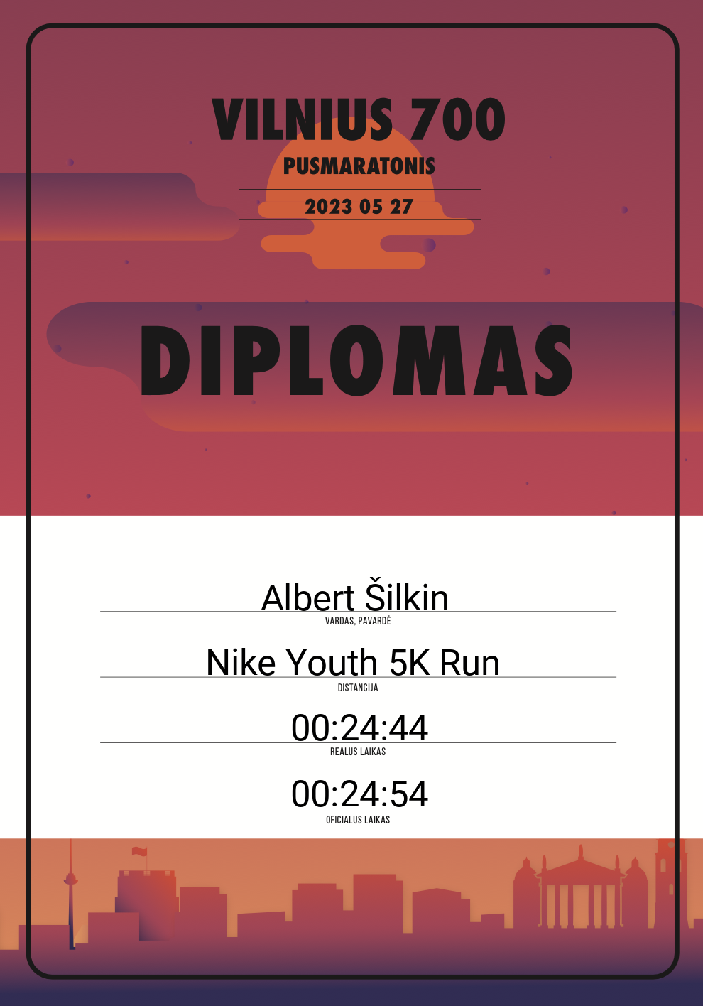| 92 | Albert Šilkin | 30689 | Lithuania | Nike Youth 5K Run | 00:24:54 | Diplomas | |