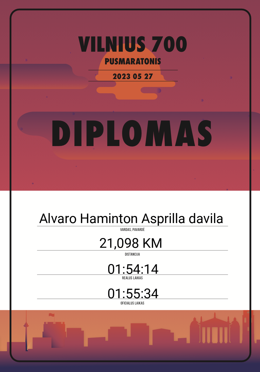 | 481 | Alvaro Haminton Asprilla davila | 11056 | Lithuania | 21,098 KM | 01:55:34 | Diplomas | |