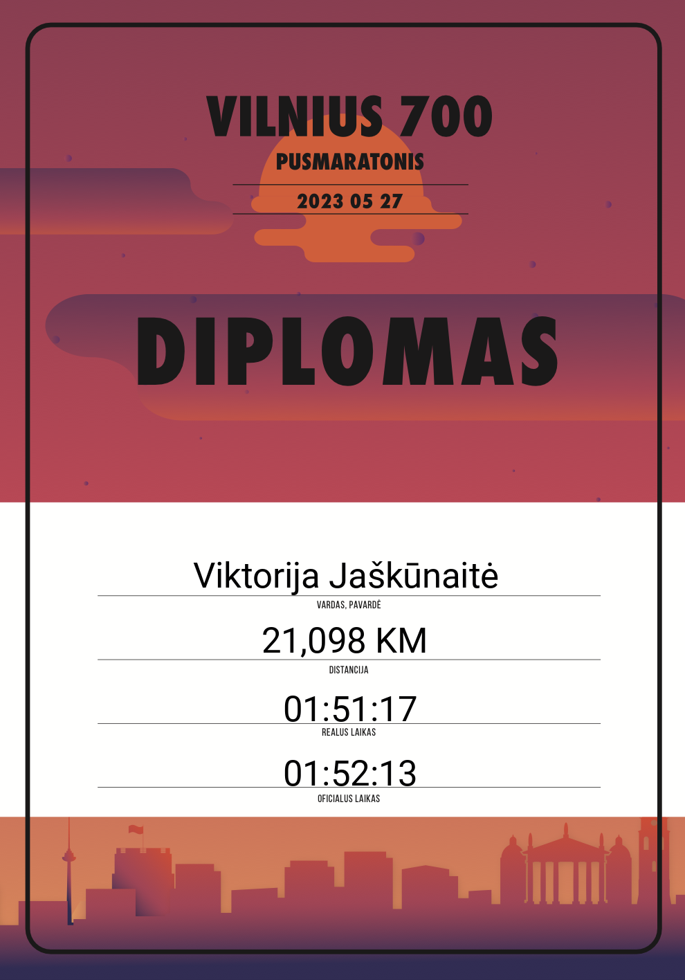 | 407 | Viktorija Jaškūnaitė | 10382 | Lithuania | 21,098 KM | 01:52:13 | Diplomas | |