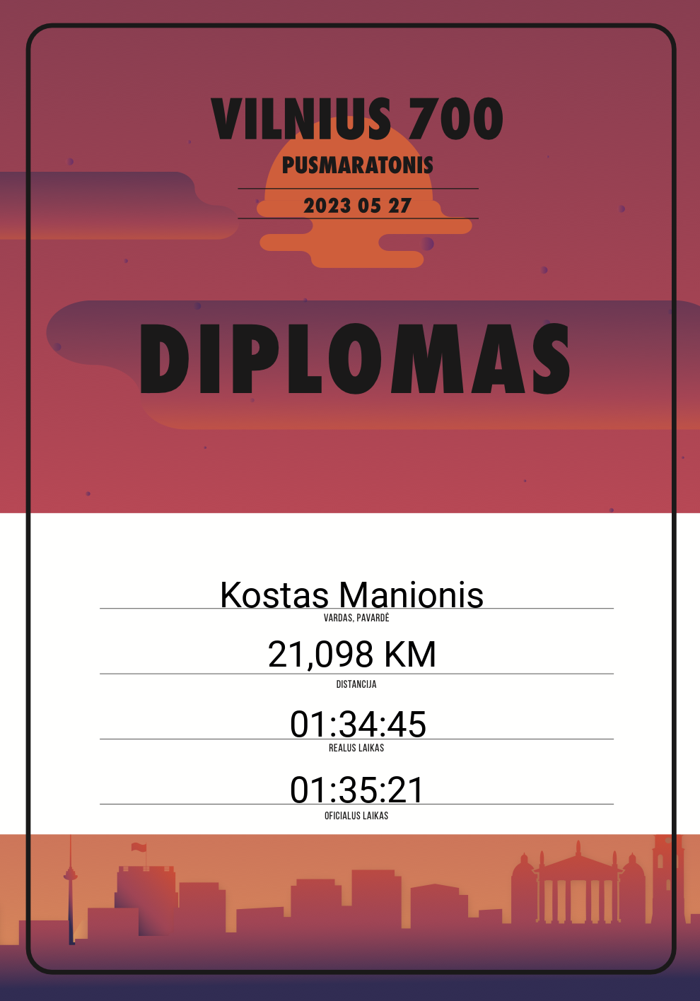 | 118 | Kostas Manionis | 10405 | Lithuania | 21,098 KM | 01:35:21 | Diplomas | |