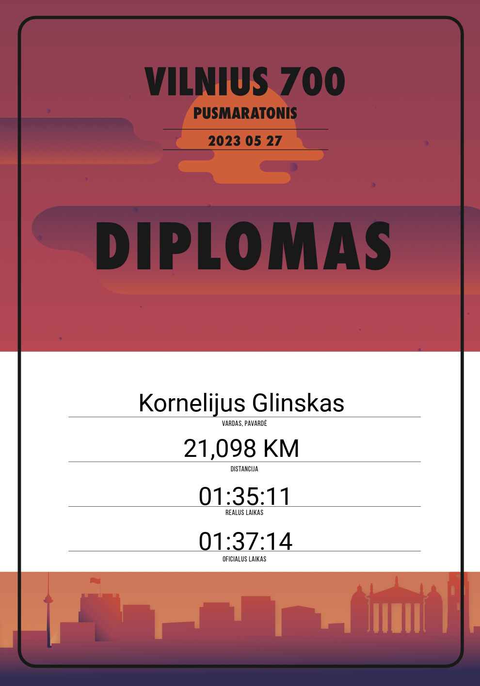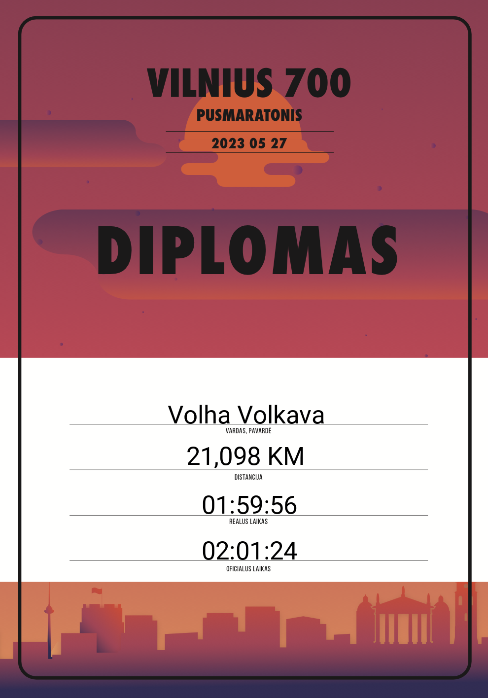 | 699 | Danielius Bacevičius | 10434 | Lithuania | 21,098 KM | 02:09:44 | Diplomas | |