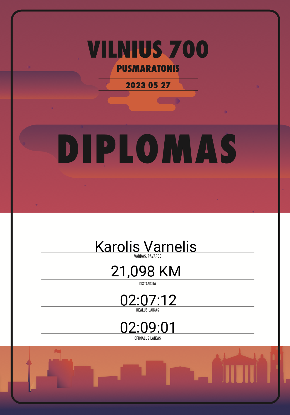 | 770 | Povilas Grigaliūnas | 10562 | Lithuania | 21,098 KM | 02:16:05 | Diplomas | |