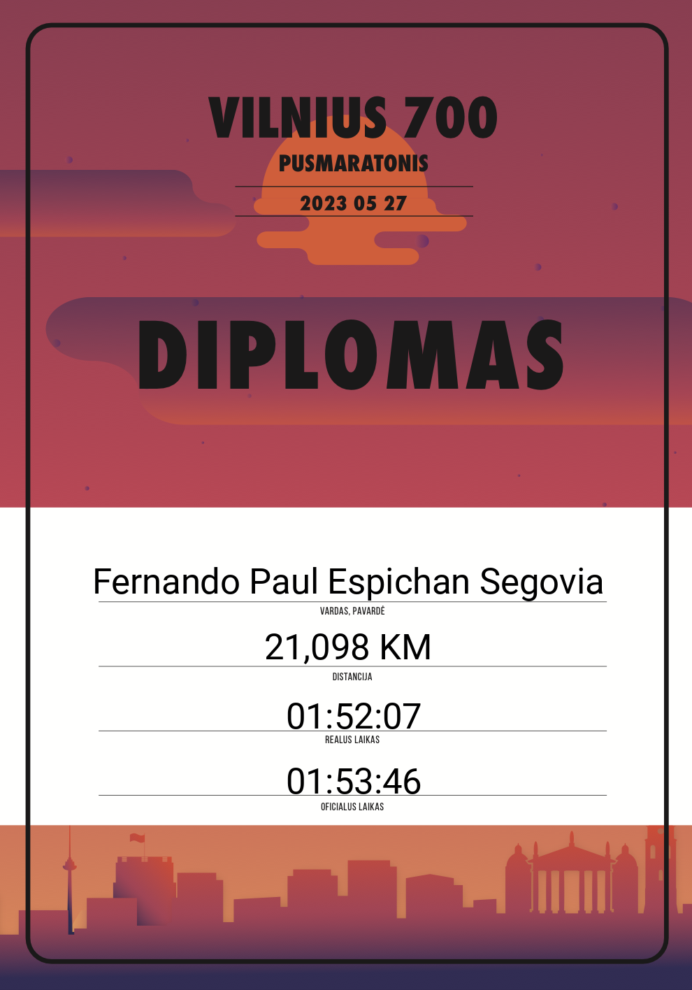 | 263 | Philippe Misischi | 10560 | Lithuania | 21,098 KM | 01:45:57 | Diplomas | |